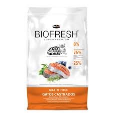 Biofresh Super Premium para Gatos Castrados es innovador y diferente, porque tiene ALTA INCLUSIÓN DE CARNES FRESCAS CON UN TOQUE DE VEGETALES Y FRUTAS NOBLES.