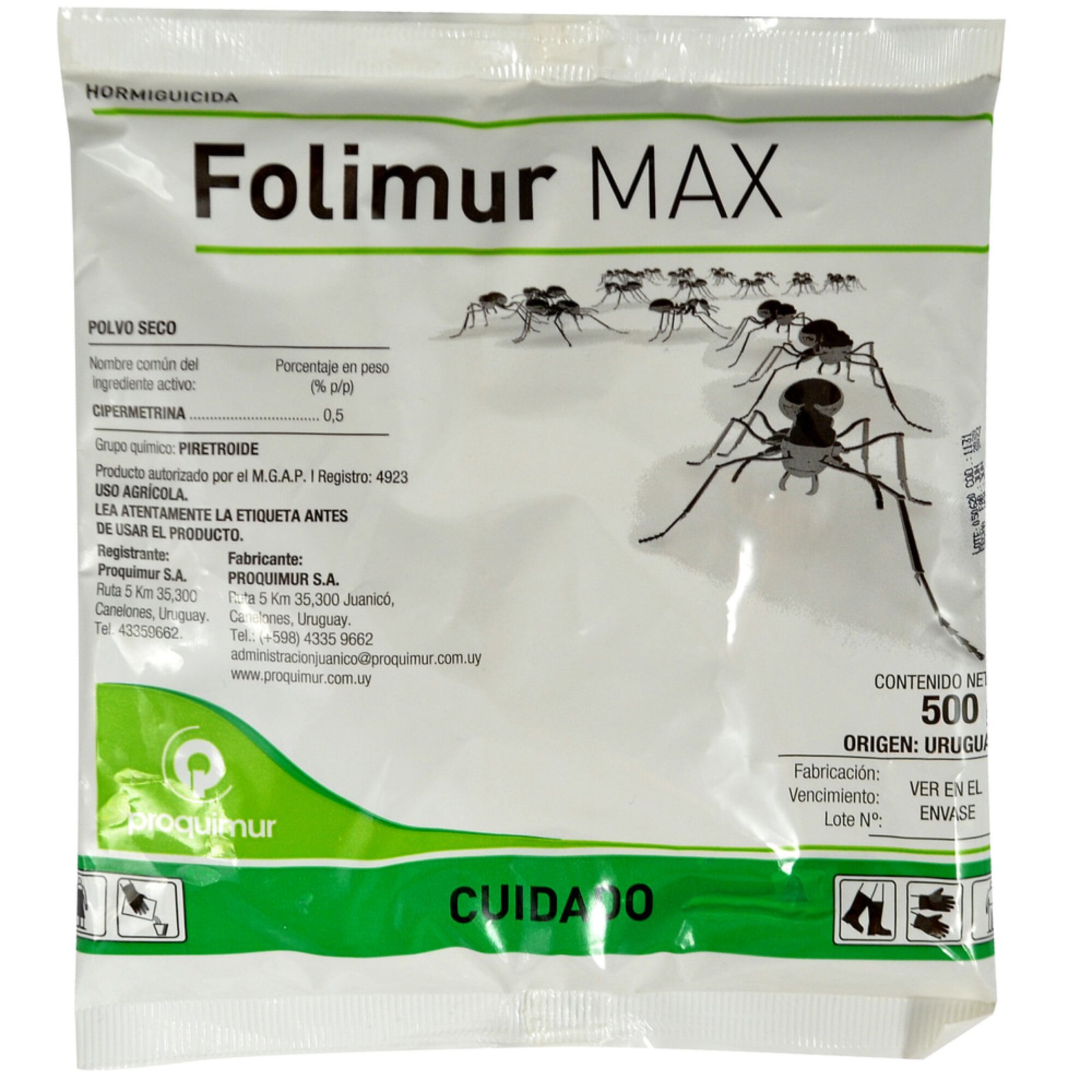 Hormiguicida Folimur 500g CategoríasJardin Tierra Flores Semillas Insecticidas Herramientas Cuidado de Plantas Accesorios Gatos Accesorios Alimentos Adulto Cachorro Húmedo Senior Snack y premios Arenas sanitarias Higiene y salud Juguetes Pequeñas mascotas Aves Peces y tortugas Roedores y conejos Perros Juguetes Higiene y salud Accesorios Alimentos Adulto Senior Snacks y premios Cachorro Raciones Hormiguicida Folimur 500g$120 Folimur MAX, penetra la cutícula de los insectos, provocando una alteración en la transmisión del impulso nervioso. Enlentece el cierre de los canales de sodio de la membrana nerviosa, perdiendo los el control muscular y ocasionándoles la muerte. Hormiguicida Folimur 500g cantidad Comprar ahora Categorías: Insecticidas, Jardin Productos relacionados Semillas De Brócoli $100 Añadir al carrito Semillas De Celosía Plumosa Variada $150 Añadir al carrito Semillas De Dalia $150 Añadir al carrito Semillas De Escarola $100 Añadir al carrito