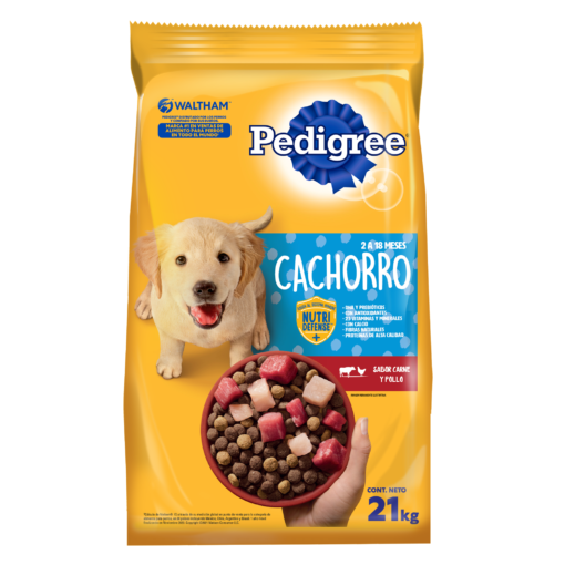 Pedigree Cachorro es alimento completo y balanceado, pensando especialmente para cubrir las necesidades básicas de tu cachorro a lo largo de sus primero meses de vida: Beneficios: CON DHA esencial para el correcto desarrollo mental y aprendizaje CON CALCIO Y PREBIÓTICOS para un crecimiento sano y vital SISTEMA INMUNE FUERTE gracias a antioxidantes, como la vitamina E, que contribuye a mantener sus defensas saludables SALUD ORAL ÓPTIMA ya que cada croqueta ayuda a la limpieza de sus dientes, a reducir la formación del sarro y a que sus encías estén más saludables SISTEMA DIGESTIVO SALUDABLE gracias a la utilización de ingredientes de la más alta calidad que facilitan el proceso digestivo, para que su pancita absorba lo mejor de su comida PIEL Y PELO ESPECTACULARES, gracias al Omega 6 y Zinc que nutren y fortalecen su piel, protegiéndolo más efectivamente de agresiones externas, y logrando que su pelo esté más brilloso